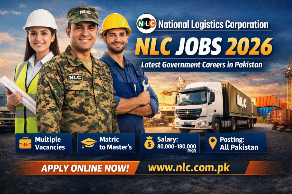 National Logistics Corporation (NLC) Jobs 2026 offer an excellent opportunity for talented, hardworking, and motivated individuals who are looking to build a stable and respected career in Pakistan’s leading government-owned logistics organization. NLC Jobs 2026 are announced for candidates belonging to different educational backgrounds, including Matric, Intermediate, Bachelor’s, Master’s, Engineering, and Technical qualifications, making these vacancies suitable for both fresh graduates and experienced professionals. With postings available across major cities of Pakistan, NLC provides a professional working environment, attractive salary packages, job security, and long-term career growth for civilians and retired armed forces personnel alike.
