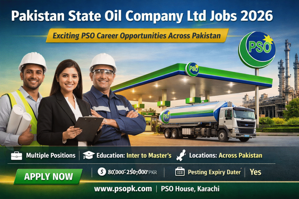 Pakistan State Oil Company Ltd Jobs 2026 are among the most awaited public-sector and corporate career opportunities for professionals, fresh graduates, and skilled individuals across Pakistan who want to build a stable, respected, and growth-oriented career. Pakistan State Oil Company Limited (PSO) is the largest energy company of the country, playing a vital role in Pakistan’s fuel supply chain, industrial growth, aviation sector, and national energy security. Every year, PSO announces multiple vacancies for technical, managerial, administrative, finance, engineering, IT, marketing, and operational staff, and Pakistan State Oil Company Ltd Jobs 2026 are expected to be even