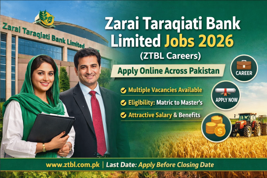 Zarai Taraqiati Bank Limited Jobs 2026 are a great opportunity for candidates across Pakistan who want to build a stable and respected career in the banking sector, especially in an organization that directly supports agriculture, farmers, and rural development. ZTBL is known as one of Pakistan’s most important government-linked financial institutions, offering professional jobs in head office, regional offices, and branch networks. In 2026, ZTBL is expected to announce multiple vacancies for fresh graduates, experienced professionals, and skilled individuals in different departments such as operations, finance, IT, audit, credit, and administration. These job opportunities are ideal for those who are searching for secure government-style banking jobs with strong salary packages, allowances, and long-term career growth.